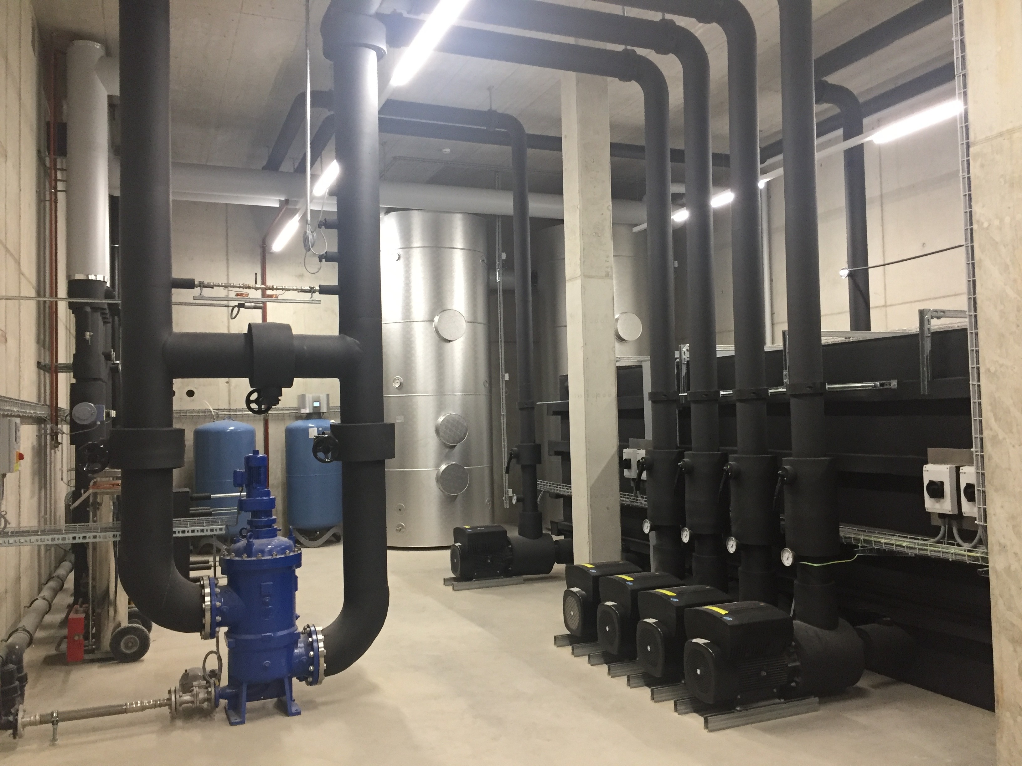 Beschreibung -Koordination der Gebäudetechnik -Wärmepumpe mit Erdsonden -Lüftung -Sanitär -Kühlung über Gipsdecken -Freie Kühlung über Erdsonden